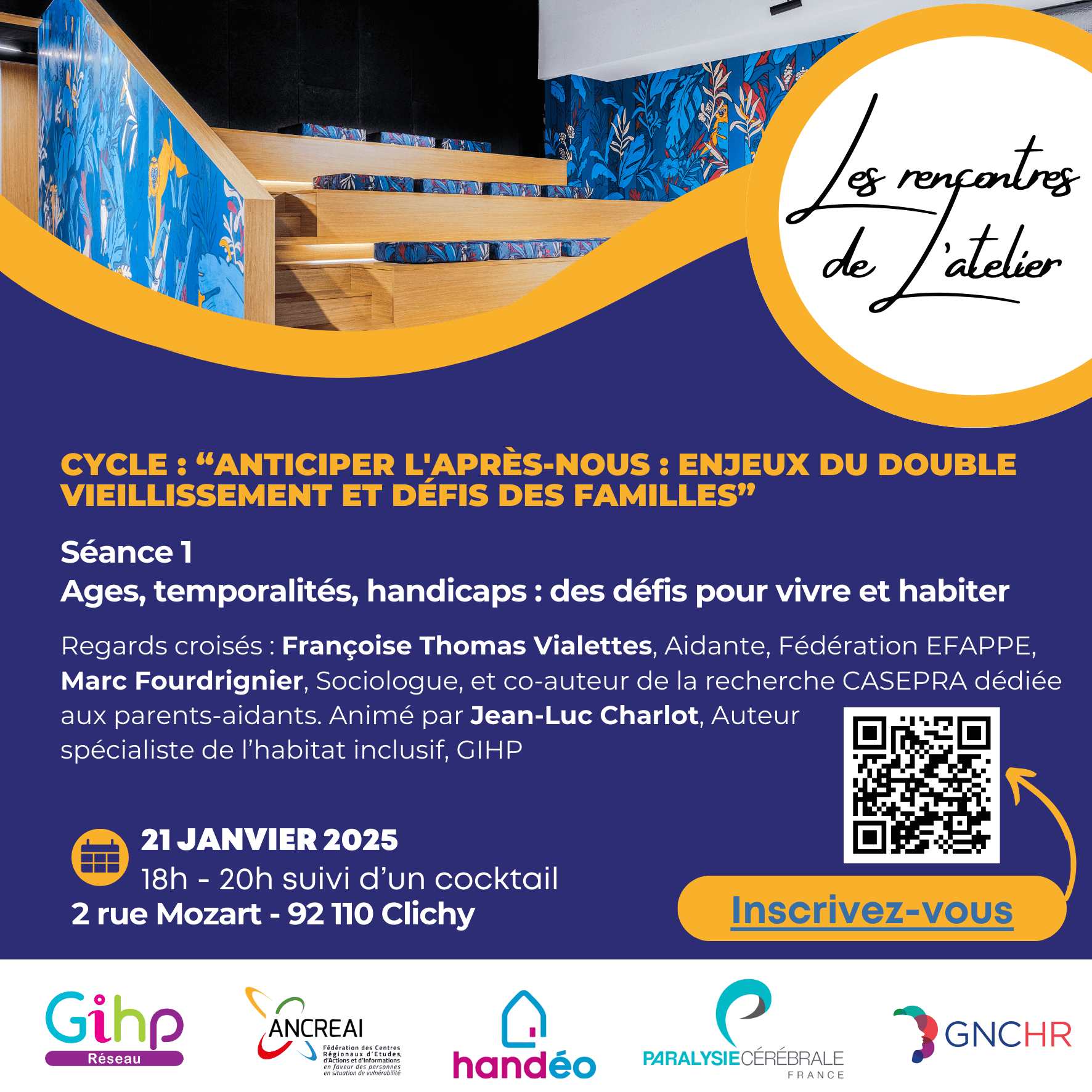 Cette rencontre se tiendra le 21 janvier 2025 de 18h à 20h au 2 rue Mozart à Clichy. Elle sera suivie d’un cocktail.